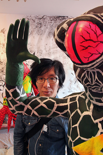 Before “MAKUU KUUKAN,” one could take a look at Motohiro Hayakawa’s work at several exhibitions around Tokyo, specifically in Billiken Gallery with “HEROES AND VILLAINS” (2012) and “Dai/U/Chu/Jin/Ten” (2012). “Shigeru Sugiura’s Toto?” (2012) was held at the Morishita Culture Centre, also in Tokyo. “LASERBEAM” is the title of his latest release through Le Dernier Cri, a French publisher dedicated to screen-printed books produced in limited editions. Although he started only in 2009, he was already bestowed with an award, the Silver Award from the 9th Tokyo Illustrators Society Contest Society Contest.