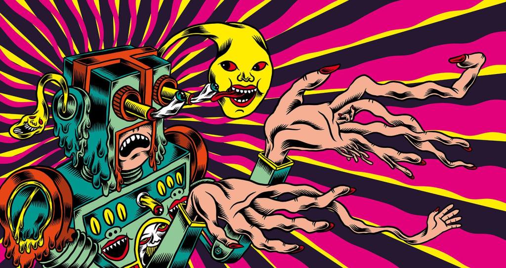 When we come to the psychedelic approach in Marco‘s work, many visual and historical references are significant. Marco Toxico‘s work is characterized by the presence of anthropomorphic figures that inhabit areas only accessible through either in a dream experience or an altered mind state. The cartoonists of the legendary American ‘Raw’ magazine or Roland Topor‘s irresistible visual allegories are close to the artist’s approach, as well as the infinite publication of superhero comics, TV cartoons and the off-set palettes of the legendary Novaro / Epucol magazines that educated all the kids of central and south America from the 60s through the 80s. Marco Toxico‘s work has been exhibited in Argentina, Brazil, Bolivia, Colombia, USA, France, Hong Kong, Iran, Mexico, among other countries. His work as editor and author has also participated in numerous festivals both in Latin America and in Europe. Through editions La Natita has published ‘Esteril’ (anthology) 2014, ‘Cobarde’, 2015, ‘Fragil’, 2016, and ‘Traidor’, (anthology), 2017.