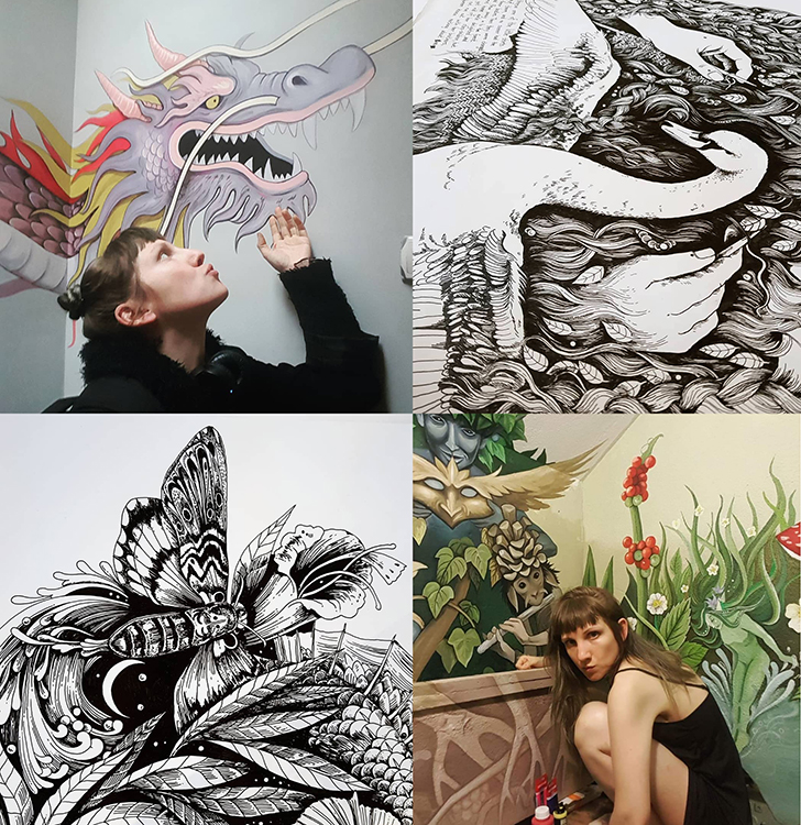 İkinci memleketim Danimarka’ya dönüşümden bu yana kalacak yer ve yemek karşılığında bir çok yerde çalıştım. Konakladığım yerlerdeki insanlarla tanıştıkça zamanla mekanlar için de çizmeye başladım. İlk olarak eski bir seramik fabrikası için bir iş yaptım, orada çok şey öğrendim ama çok da zorlandım, ikincisi şehirde bir hosteldi ve kaldığım oda delirtici derecede ufaktı. Şimdi şehrin dışında Earthwise isimli bir yerde çalışıyorum; her şey çok tatlı fakat kendi evim olmadığı müddetçe işime ve kendime odaklanmam hep yarım kalıyor. Şu an için part-time işlerle meşgulüm, bir yandan burdaki işlere yardım ederken diğer yandan da etrafı tanımaya çalışıyor ve kendi işlerime ayırabileceğim boş zamanları kovalıyorum.