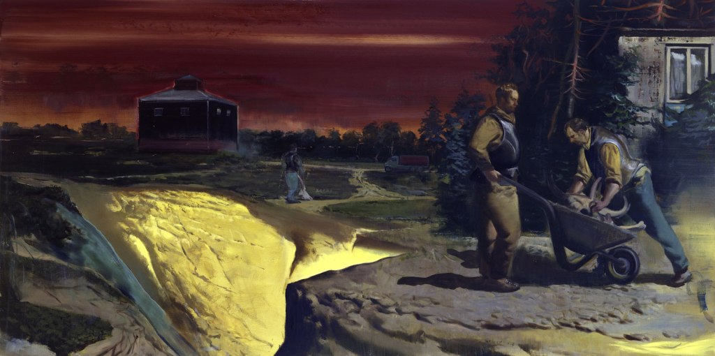 The “New Leipzig School” is a term that emerged independently and outside of our consciousness as painting contemporaries. This label was pinned to us and did not appeal or seem fitting to everyone. Basically, it referred to the fact that in Leipzig, painting was still taught on a high figurative level, even though most “experts” in the early ’90s thought to abolish the utilization of brushes after 40,000 years. Painting was considered obsolete by these cretins, and those who nevertheless turned to it could be sure of their contempt and ignorance. In this respect, these years were a healing retreat, in the course of which it came to a thinning of the people, as only the real painter could resist the temptation of electronic cabinets and those of conceptualist seminars.