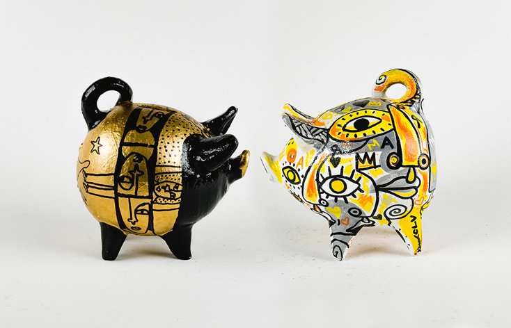 A few years ago, Daniela Greve, a political scientist, cultural manager and art collector, began to acquire the classic clay pigs (which, depending on their region of origin, have particular characteristics, tones, materials and functions). Almost like a natural instinct during the quarantine process that the pandemic brought, Greve and her daughter began to intervene and decorate them, giving them an even more unique character.