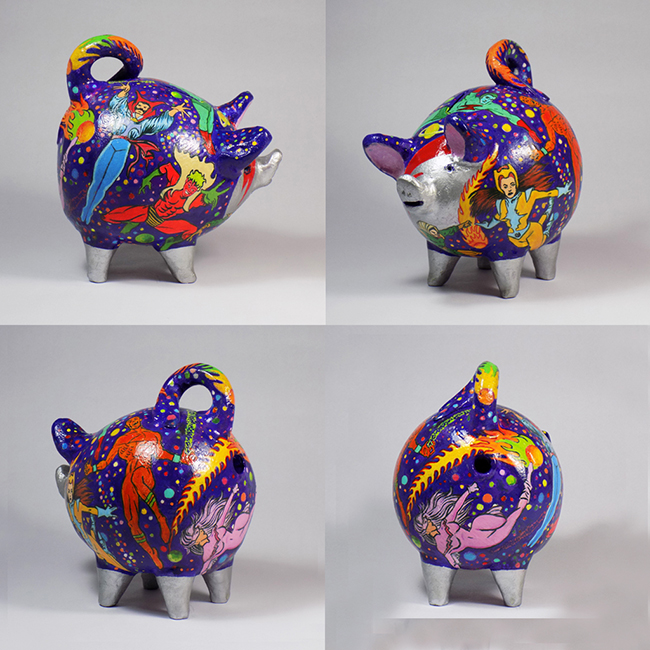 “This project seeks, on the one hand, the re-signification and revaluation of those traditonal Piggy artifacts made of Greda (Clay) from the town of Pomaire, mainly because it represents an object belonging to both a living folk tradition and to the identity of the people living in the central/southern area of Chile. On the other hand, I consider that, as a visual form in the field of the arts, “Chanchos de autor” offers a different and innovative medium, much closer to the public, which helps to bring different social and cultural segments closer to art”,