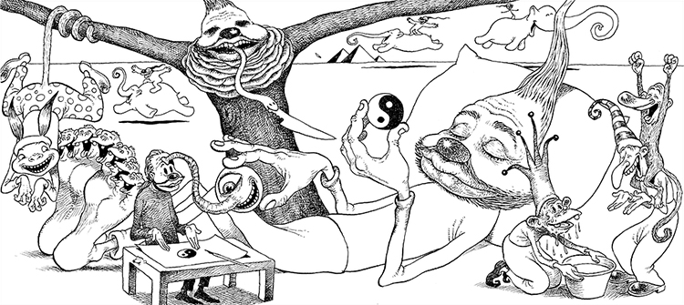 Karikatürist, ressam, heykeltıraş Bahadır Baruter’in Ruhaltı dizisi, bir kuşağın “ruh” dünyasını derinden etkilemiştir. Kimilerinin editörü de olduğu dergilerde yayımlanmış karikatürlerinde bir kara mizah üslubu geliştiren, yeraltından bakan, tabulara dokunan sanatçı, benzer dönemlerde başlayıp sürdürdüğü Ruhaltı dizisinde çok daha karmaşık taramalar ve incelikle tasarlanıp işlenmiş metamorfoz kompozisyonlarıyla dergi ciltlerinde özerk bir alan açmıştır. Ruhaltı, tekstüel bir eşlik gerektirmeyen, özel bir grafik okuma ve bu okumayı olanaklı kılan özel bir hafıza talep eden yapısıyla zaman içinde içinde yer aldığı dergilerden ayrılıp kült statüsü kazanmış ve kitaplaşmıştır.