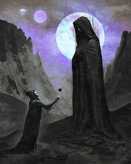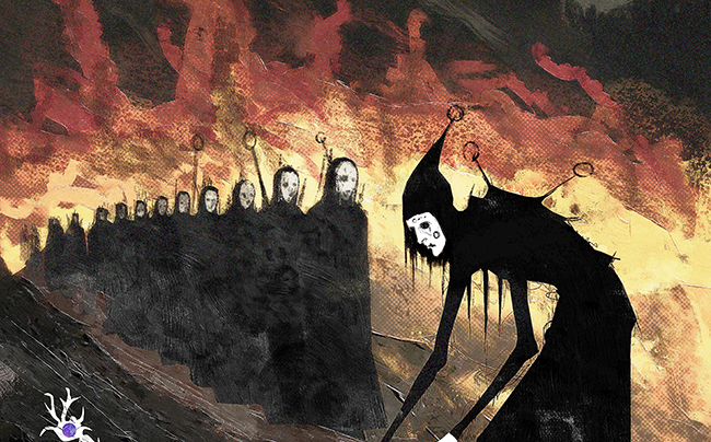 Erdem Çılgın: Selamlar, elim kalem tutmaya başladığından beri çizim yapmaktayım aslında. Bu işe herkes gibi merakla, gördüğümü çizmekle başladım. Ama sanırım çizimlerimin değiştiği ve şekillendiği an 2016’da üniversiteye başladığım zaman oldu. O zamana kadar yine bu karanlık tonu elbette kullanıyordum, sadece çizimlerimin belli bir yönü yoktu. Üniversitede Siyasi Tarih dersinde Thomas Hobbes’un Leviathan eserini görmemle birlikte yönümü konseptsel anlamda tamamiyle değiştirdim. Leviathan’ın kapağında Abraham Bosse’nin bir gravürü var; Taç giymiş kral ve kralı var eden bir halk. Yüzleri krala dönük şekilde hepsi bedeninin bir parçasını oluşturuyor. İçinde daha bir sürü sembolik detaylar ve yerleştirmeler var. Bu kapağı gördüğümde bende kendi Leviathan’ımı yaratmak istedim. Bunu en iyi nasıl sembolize edebilirim diye düşünürken aklıma mor bir küreyle bunu vermek geldi, Çizgimi bulduğum en parlak an bu diyebilirim.