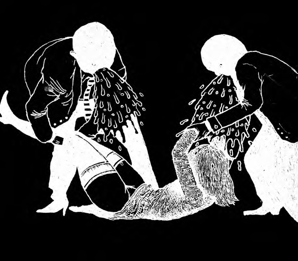 Yeni başlayan aksiyon dizisi reklamı. Patlayan bombalar, havaya uçan arabalar ve silikon memeli tehlikeli kadınların macerası. Ter, erkeklik, tam otomatik silah, gece elbisesi, jartiyer. Yakın plan. Yazar’ın buruşuk deri üstünde gezinen göz yaşları. Kızın eline bacak arasına kayıyor ve kamere takipte. Asla tepki vermiyor. Adam fermuarını açıyor ve aletini salıyor. Ofisin ortasında otuz bir çekmeye başlıyor. Akan zevk sularına yakın plan. İçeriye sızan güneş ışığıyla parıldayan damlalar. Şakaktan akan ter. Beyaz ofis. Beyaz kadın. Apış arasında gezinen kırmızı ojeli yalanmış parmaklar.