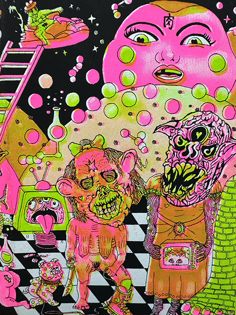 A name that evokes either the very best in a discipline or the last breath before giving up the ghost. A silkscreen workshop born in 1993 from the ashes of the French “undergraphic” movement, and still resisting gentrification in a Marseilles wasteland. Three decades of demanding, uncompromising craftsmanship. A bizarre graphic universe at the crossroads of comics, art brut and horror. A laboratory oozing with the scent of ink, from which hundreds of fanzines, posters and books filled with heterogeneous drawings gush into your face straight from neuronal disturbances all over the world.