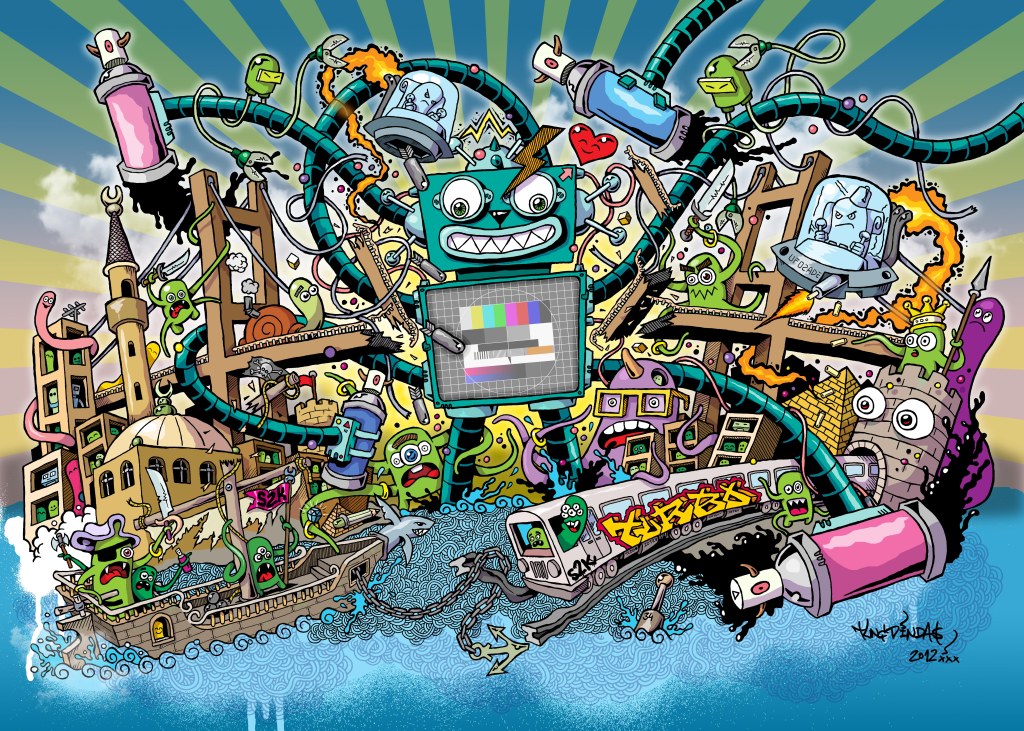 TURBO: Ben 1971 doğumluyum. 1980’lerde başlayan Break Dance fırtınasına ben de kapılmıştım. O dönemlerde CD filan yok. Gidip Break Dance müziklerinin plaklarını alıyorduk dükkânlardan ya da kasete çektiriyorduk. Ben de kendimi bildiğimden beri resim yaparım. Plak kapaklarında grafitileri görüyordum. Çok hoşuma gidiyordu. Sonra 1984 olması lazım. Videocudan ‘Beat Street’diye bir film kiralamıştım. O filmi gördükten sonra grafitinin ne olduğunu daha iyi anladım ve bugüne geldim.