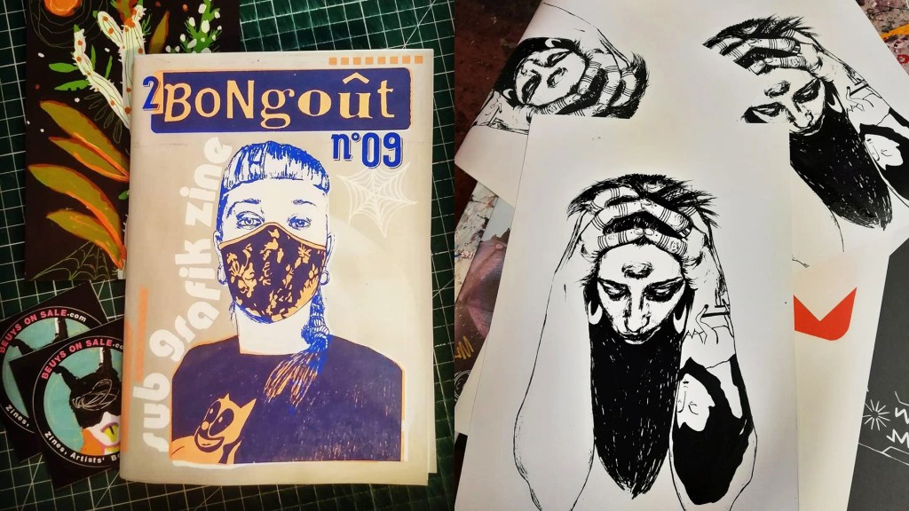 We are back with another Bongoût classic, dear readers. This time Zezeah, one of our local Turkish talents, is on the cover with a grotesque drawing and we are really proud of this. As the fanzine cover suggests, the atmosphere is darkly otherworldly; with freehand drawings by Les Sœurs Siamoises and Joost Halbertsma‘s symbolic narrative accompanied by dense, detailed illustrations by Jurictus, Zezeah and Sam Rictus, and all this chaos is balanced by André Lemos’ structural graphic sense.