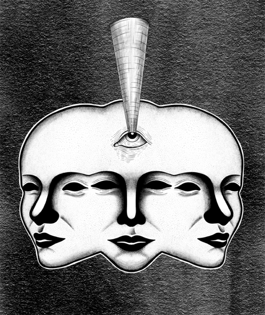 The line of the illustrations are filled with cynical humor, and the concepts touch absurdity in order to reflect the irony of reality.
