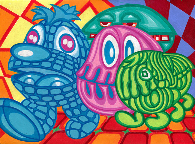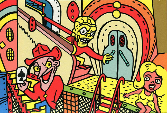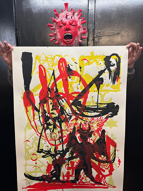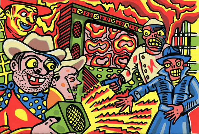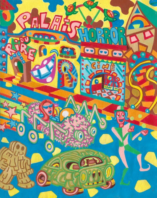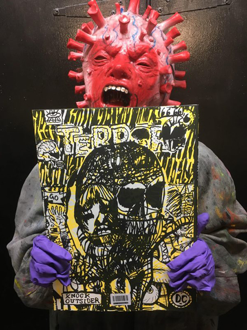 A spontaneous yet progressive deconstruction of already-digested imagery, and above all the revelation of a magical combo between contemporary art brut and underground punk graphics.