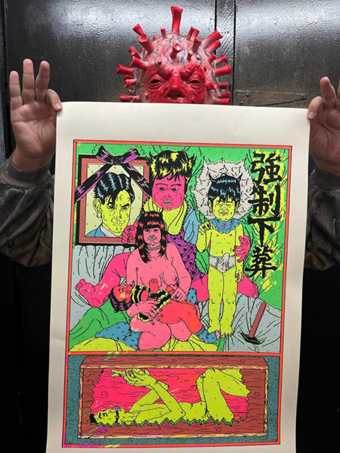 A name that evokes either the very best in a discipline or the last breath before giving up the ghost. A silkscreen workshop born in 1993 from the ashes of the French “undergraphic” movement, and still resisting gentrification in a Marseilles wasteland. Three decades of demanding, uncompromising craftsmanship. A bizarre graphic universe at the crossroads of comics, art brut and horror. A laboratory oozing with the scent of ink, from which hundreds of fanzines, posters and books filled with heterogeneous drawings gush into your face straight from neuronal disturbances all over the world.