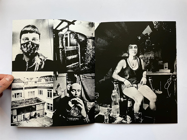 Apart from this, we can’t help talking about the artist’s productions for many different collectives and publications such as ‘Gonzine’, ‘Alkom’x’, ‘EpOx et BoTOx éditions’. Also the latest works for the ‘Archives de la Zone Mondiale’ and a punk-rock photozine ‘Dunkle Bitumen’are some of the artist’s remarkable works.