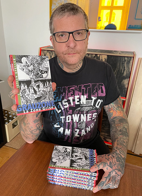 Christian Gfeller with his novel ‘Grauzone’ la Zone Grise (Bongoût) 2024
